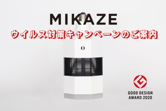 「MIKAZE」ウイルス対策キャンペーンのご案内 <<更新>> この度の新型コロナウイルス第3波の拡大、及び本格的なインフルエンザ流行のシーズンに入りまして、ウイルス対策空気清浄機として「MIKAZELED脱臭照明」を多くの方にお届けし… 2021年1月22日 お知らせ